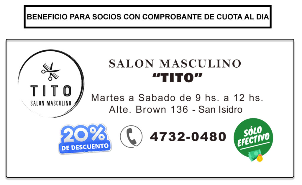 BENEFICIOS EXCLUSIVOS PARA SOCIOS CON COMPROBANTE DE CUOTA AL DIA
